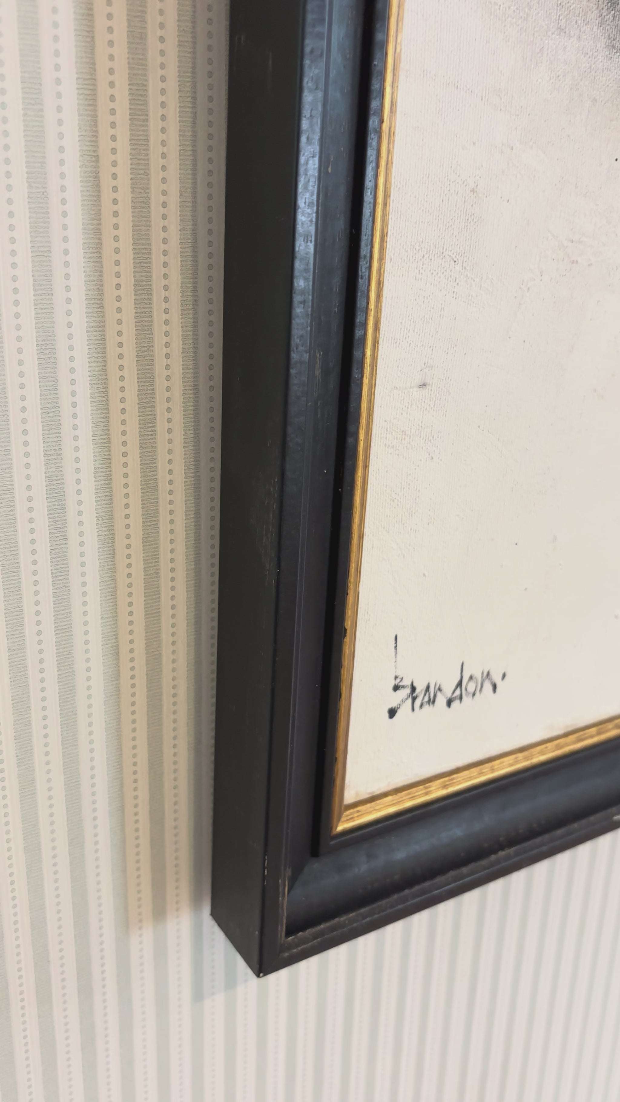 A dramatic piece by Standon, painted in his signature minimal style but full of character and grace. Its bold presence is accentuated by the statement black frame with gilt slip. This artwork can be hung alone, or else paired with March Of The Guards as a truly distinctive and impressive duo.