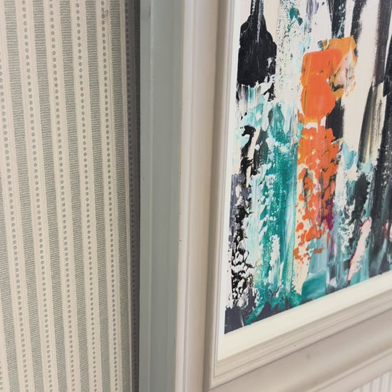 A dynamic abstract cityscape by Sabina Nealon in a classic grey frame with a white slip. A favourite of ours, this is characterful addition to any wall!
