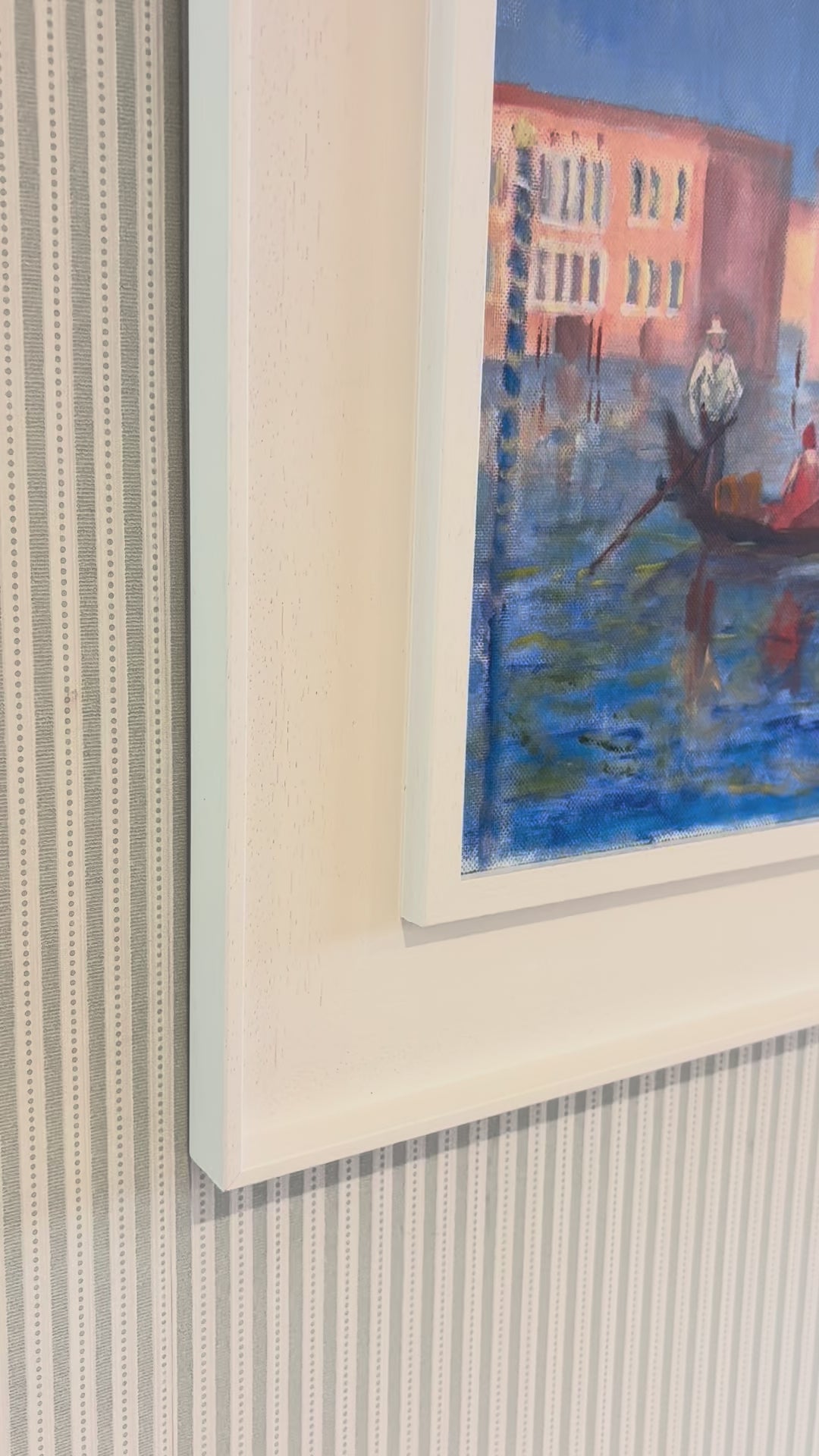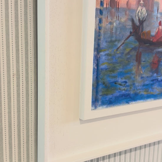 A vivid and captivating scene of Venice’s iconic Grand Canal. Signed and framed in a clean white St Ives surround.