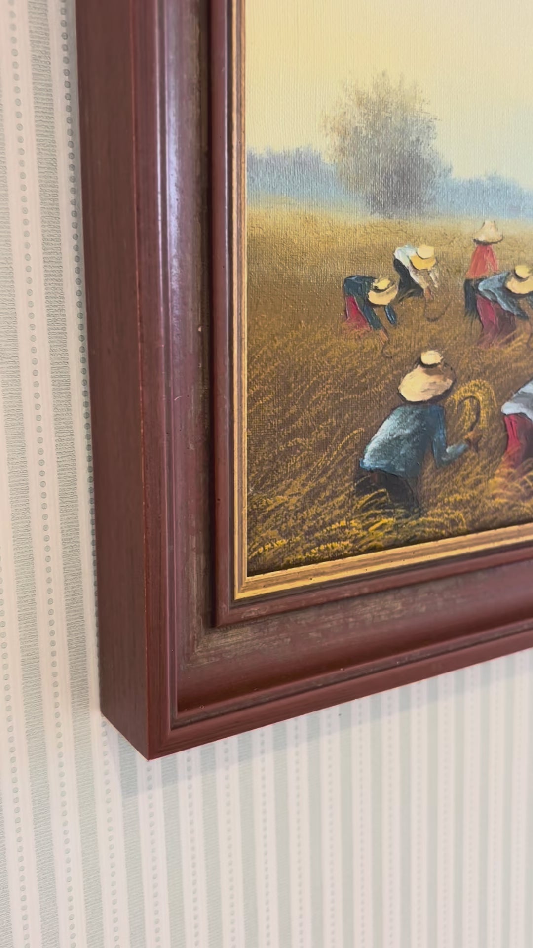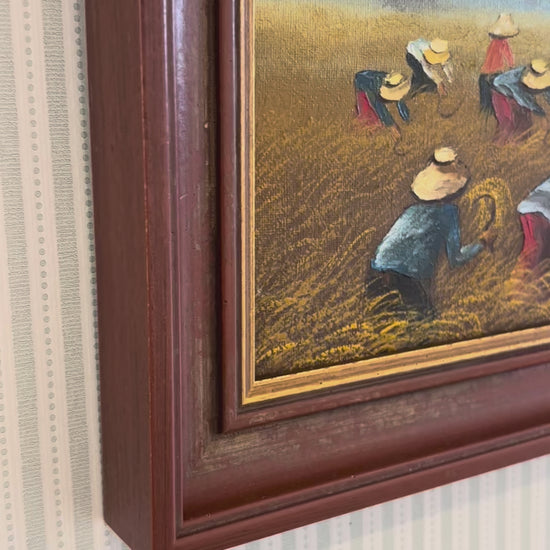 Rich in warmth and detail, this piece beautifully captures a timeless tradition. Finished in a sophisticated burgundy and gilt frame.