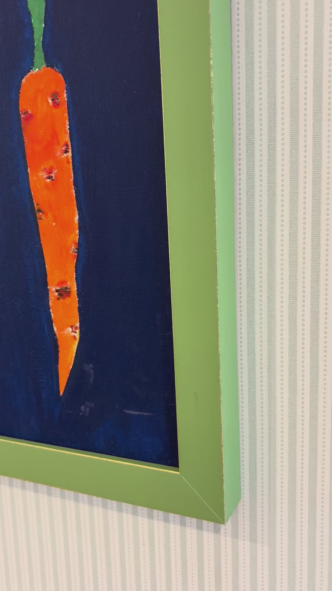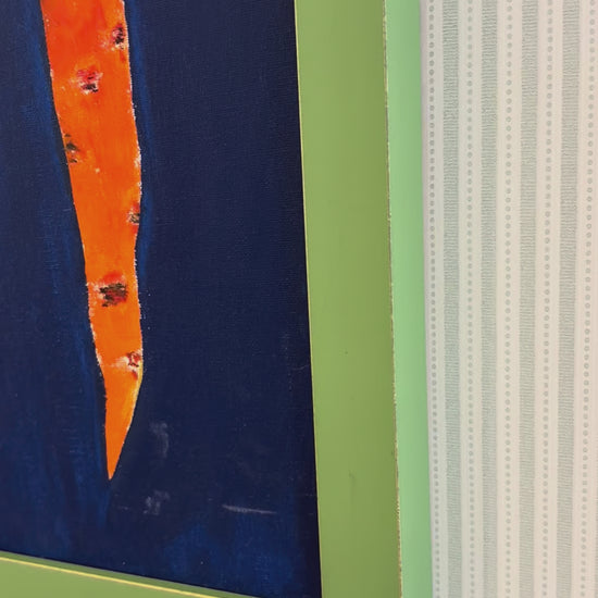 A cheerful and contemporary piece that will elevate any kitchen. Framed in a moss green surround with subtle gilt edge.